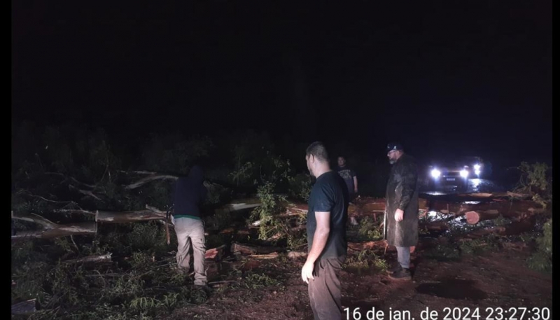 A forte chuva causou o destelhamento de 7 residências localizadas nos Bairros Mauá, Primavera, Noêmia e Santo Antônio. No interior do município foram registrados o destelhamento de 2 casas nas localidades Piquiri/ Posto Schell e Parada Cunha. Foram registradas ainda árvores caídas nos Bairros Soares, Primavera e na Estrada da Porteira Sete, causando interrupção da via. Na BR 290 foram registradas quedas de árvores que foram atendidas pelo Corpo de Bombeiros.