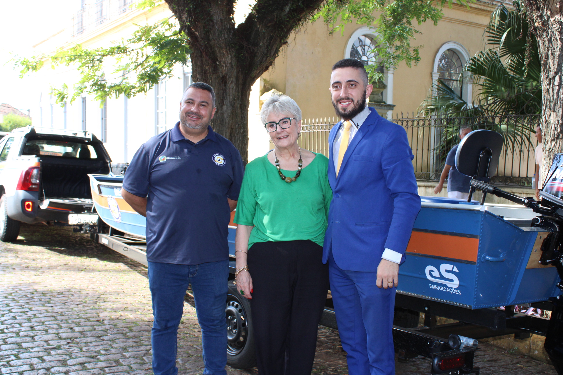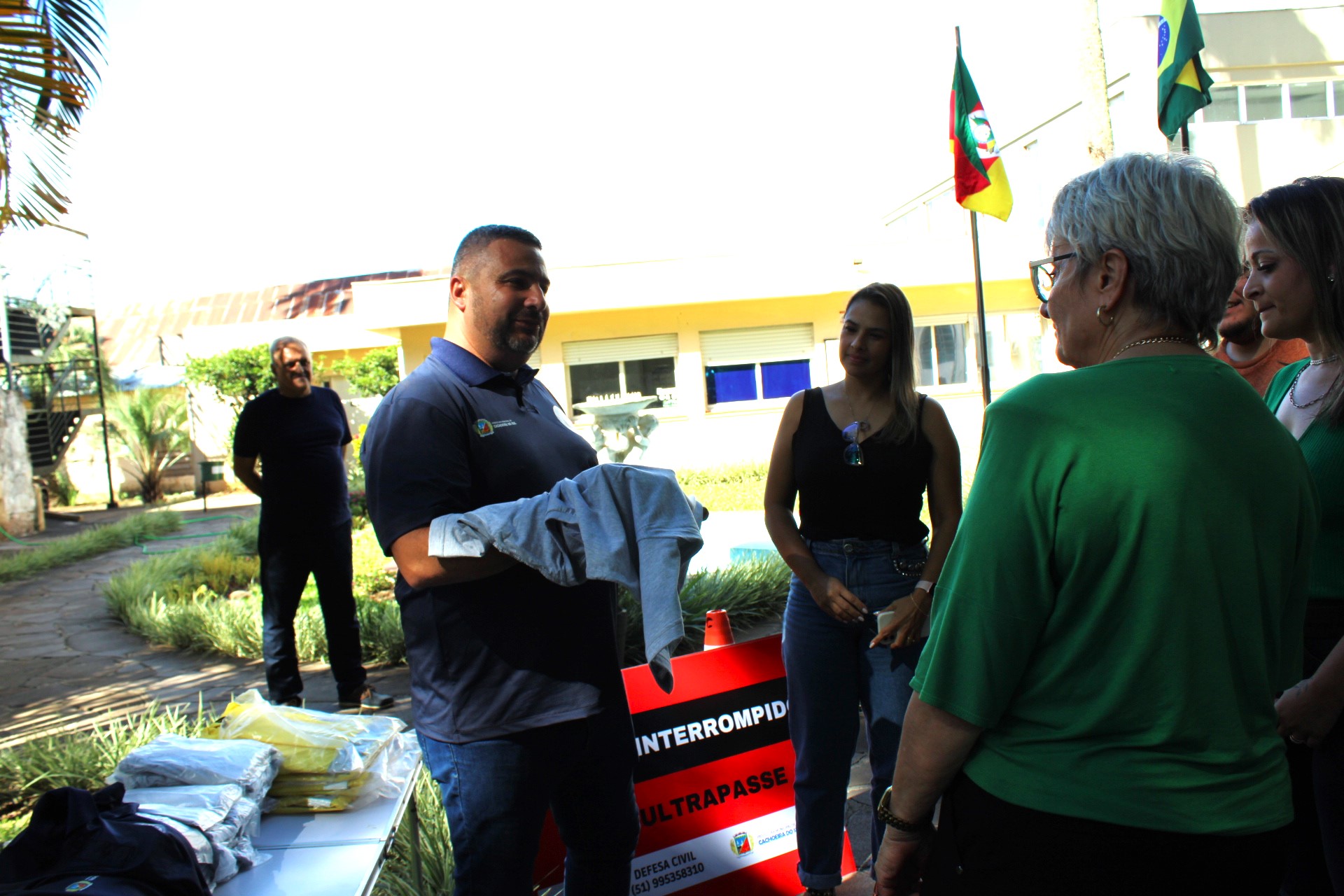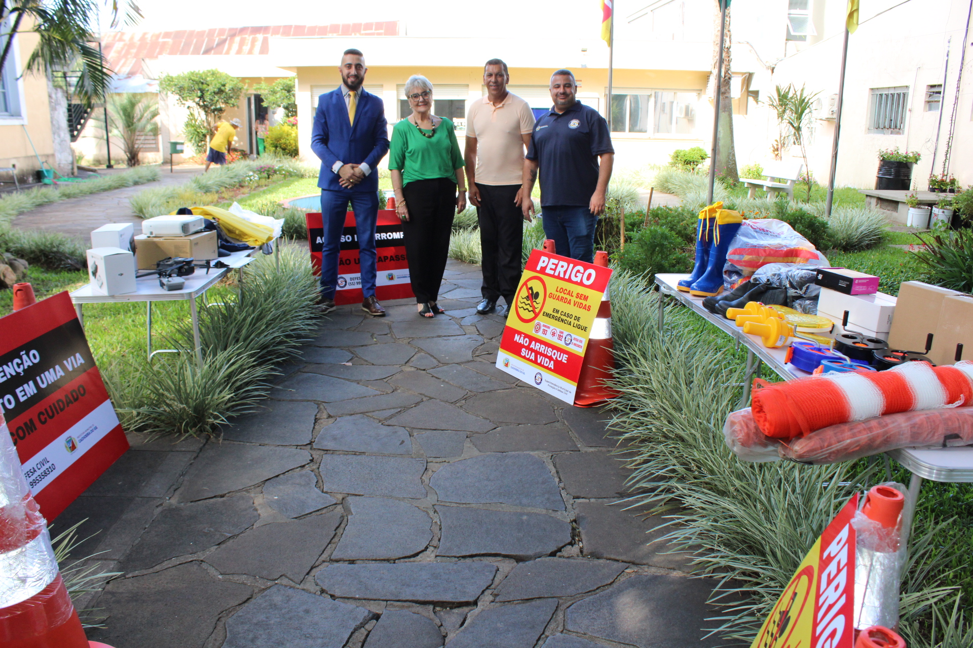 A Prefeita Municipal Angela Schuh, junto com os vereadores Jeremias Madeira e Kader Saleh entregaram na tarde desta sexta-feira (1º) equipamentos e materiais adquiridos através de emendas impositivas destinadas pelos vereadores para as ações de proteção e defesa civil no Município.
