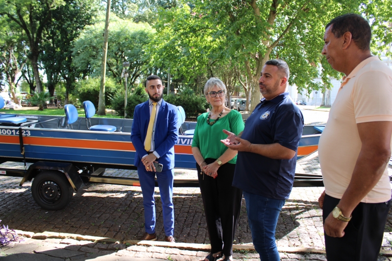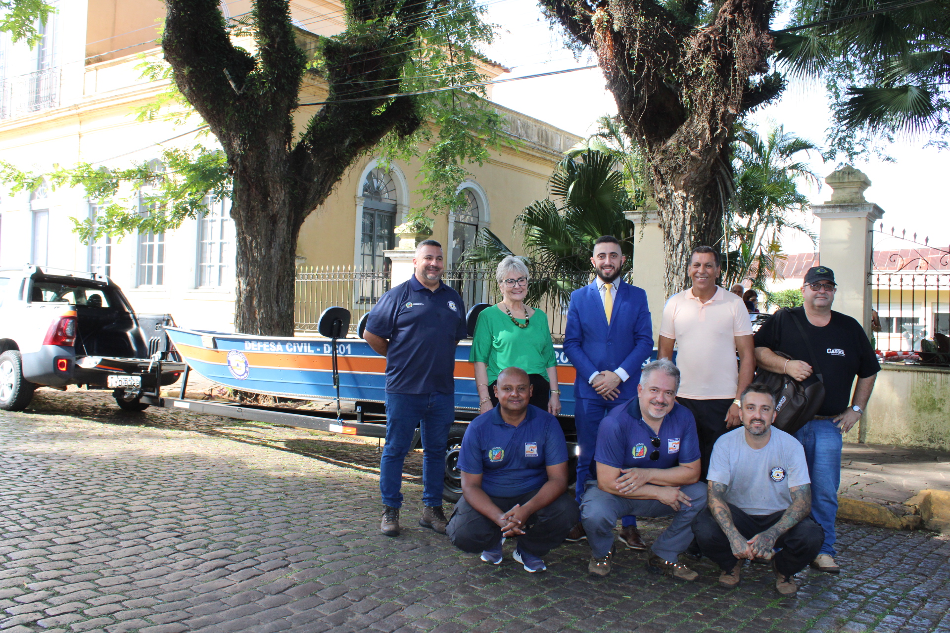 Embarcação: A embarcação modelo semi-chata com motor de 30HP e carreta de transporte, é a primeira embarcação adquirida para a Defesa Civil de Cachoeira do Sul e amplia a capacidade de resposta de atendimento à comunidade ribeirinhas e do interior do Município principalmente em períodos de inundações.